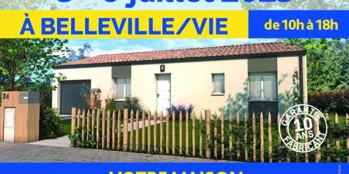 PORTES OUVERTES les 5-6 Juillet 2025 à BELLEVILLE/VIE de 10h à 18h !VOTRE MAISON À PARTIR DE 134500€*RDV au 21, rue de l'Étang 85170 BELLEVIGNY*Visuels non contractuels. Voir conditions en agence.... En savoir plus